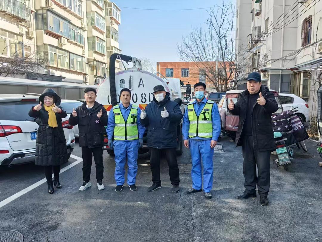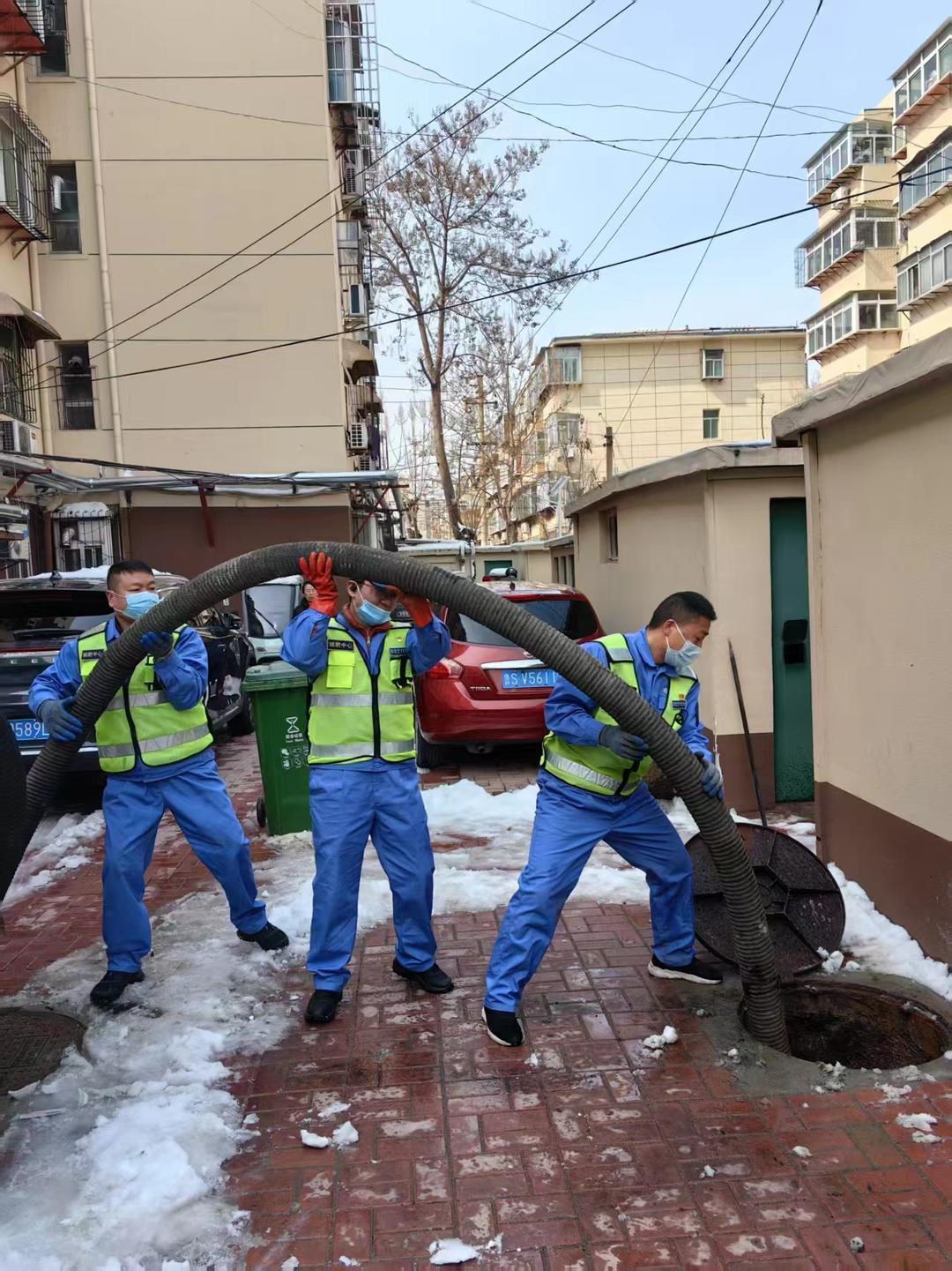 寒冬里的长盛北区,队员们趴在结着薄冰的检查井边,一铲一铲地往外捞建筑垃圾。寒风像刀子一样刮过脸颊,手指冻得失去知觉,他们就轮流哈气取暖,硬是奋战四个小时,将井内清理干净。在东仓15号楼,管道中的油污板块如同“拦路虎”,队员们跪在满是污水的管道旁,用工具一点点将其破碎、捞出。